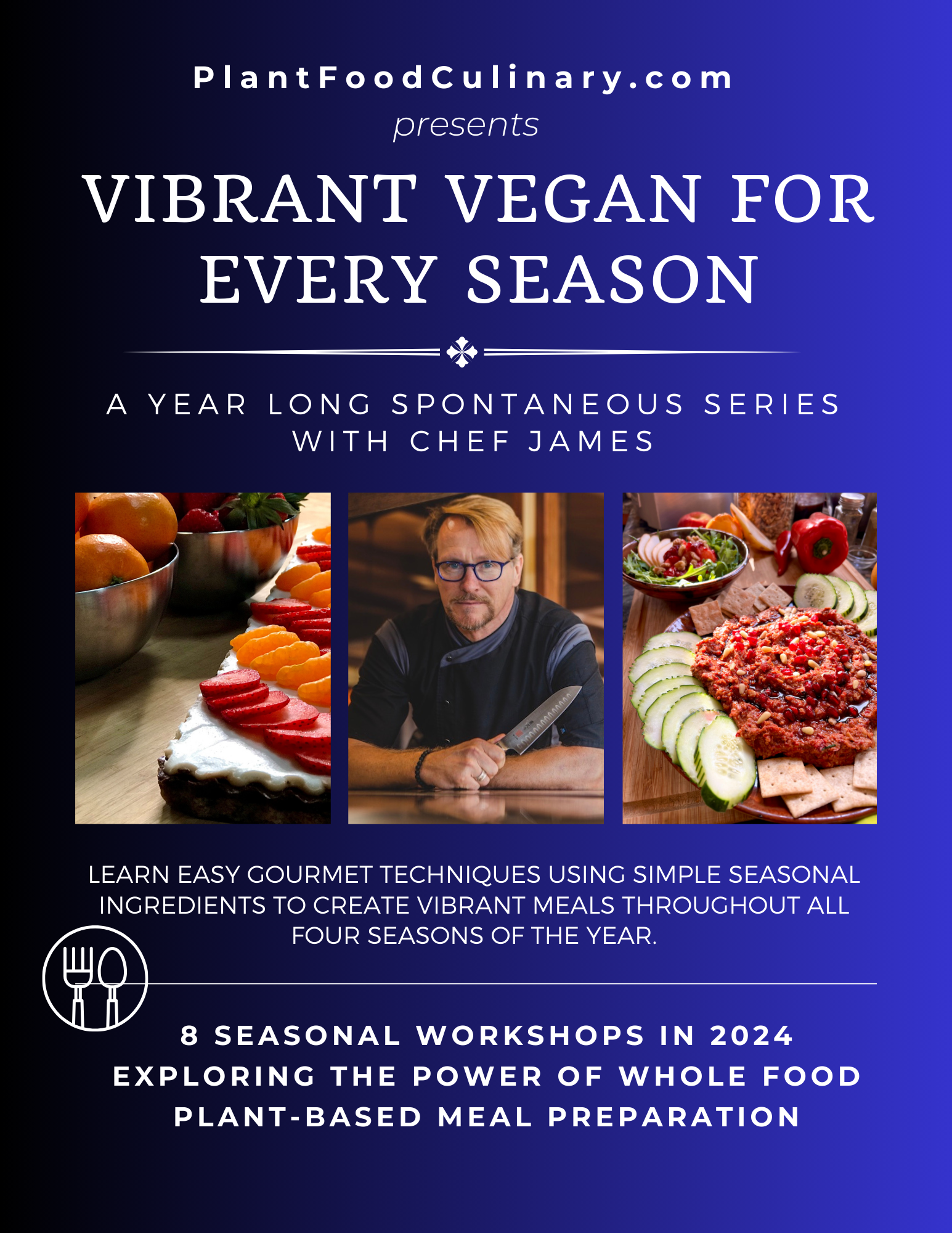 "Chef James’ course has totally changed my husband’s and my life for the better! His buckwheat mango granola, sun dried tomato crackers, buckwheat oat chia cereal, his almond cheese that tastes just like cream cheese, his cashew mayonnaise that my husband can make cole slaw with, his walnut brownies, are just a few of the wonderful recipes he provides. The culinary guidance he provides in the course is top notch! How to make sprouts. Making and eating foods that are alive. I have had rheumatoid arthritis 25 years and I feel better now. My inflammation is normal. I’m close to being half way through the course. It was money well spent, an investment in our future. My husband has liked everything I have made in the course. I have so much more confidence now, my knife skills have improved greatly, I use a dehydrator with confidence now. I don’t eat salt or oil, as I’m salt sensitive, re my blood pressure, and chef James has given me options to make recipes without those two ingredients.